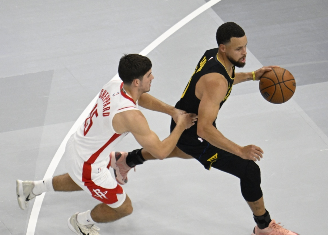 关键阿门也没投射,1、2号位都打不了,如果打3号位可以,但和杜兰特位置重叠;打4号位对抗不太够。还有谢泼德,本赛季成长确实很明显,而且具备攻防一体的属性。但要注意,所谓的攻防一体,是他作为协防人来说,他的判断和大局观很出色,但就他个人来说,高度和横移速度是短板。对手知道他能投,限制他出手,他控运速率远没有达到合格轮转的地步,只不过是火箭整体掩盖了谢泼德的缺陷。还有很容易让人产生错觉的小贾,有投射有防守积极性,但进步不明显,持球能力不足。当然,杜兰特依旧无解。